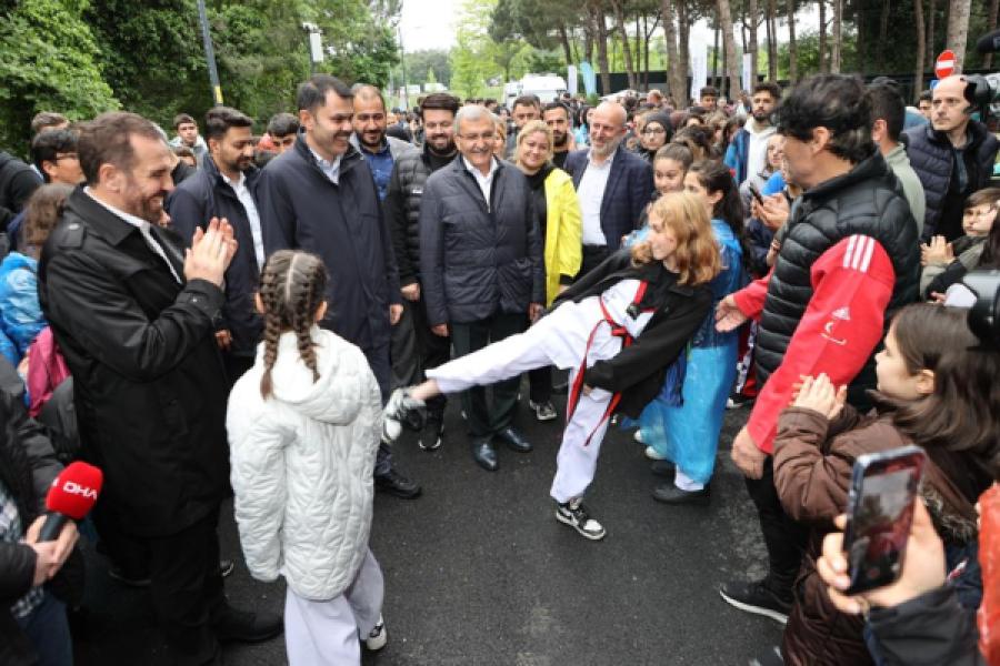 Bayram coşkusuyla gençlerin enerjisinin harmanlandığı buluşmada sporcularla yakından ilgilenen Bakan Kurum ve Başkan Murat Aydın yürüyüş boyunca gençlerin heyecanına ortak oldu.
