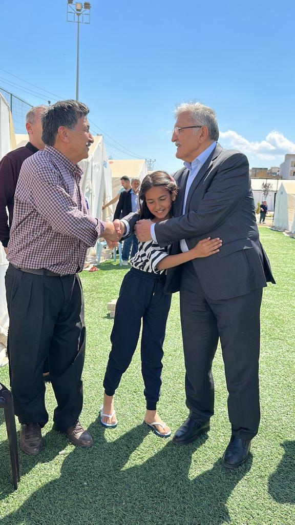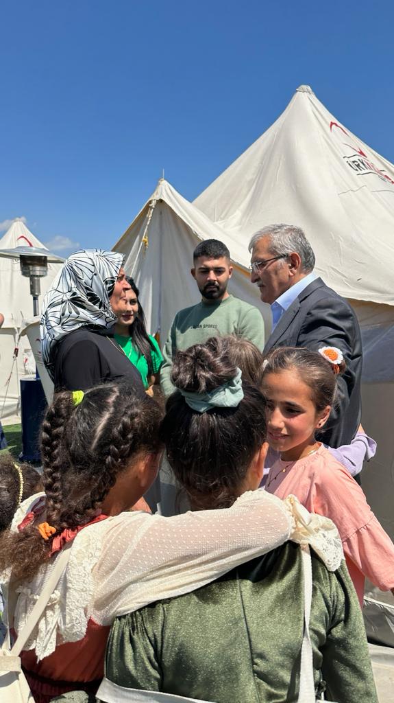 Beykoz Belediyesi tarafından afetzedeler için kurulan yaşam alanında kardeş şehir sakinleriyle bir araya gelen Başkan Murat Aydın: “Sizlere Beykozlu hemşehrilerimizin selamlarını getirdim. Bu bayramı hepimiz içimiz buruk karşıladık. Kırıkhan’da hayat normale dönene kadar sizlere olan desteğimizi sürdüreceğiz. Rabbim ülkemize bir daha böyle bir afet yaşatmasın, birlik ve beraberlik içinde nice güzel bayramlara kavuşmayı nasip etsin” dedi.