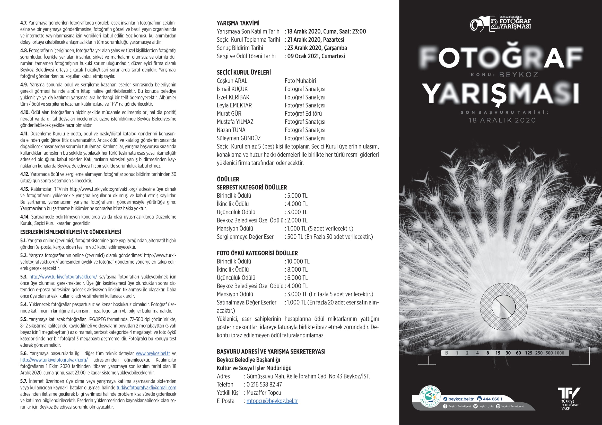 Katılımcılar 1 Ekim 2020 itibariyle TFV resmi sitesine fotoğraflarını yükleyebileceklerdir.