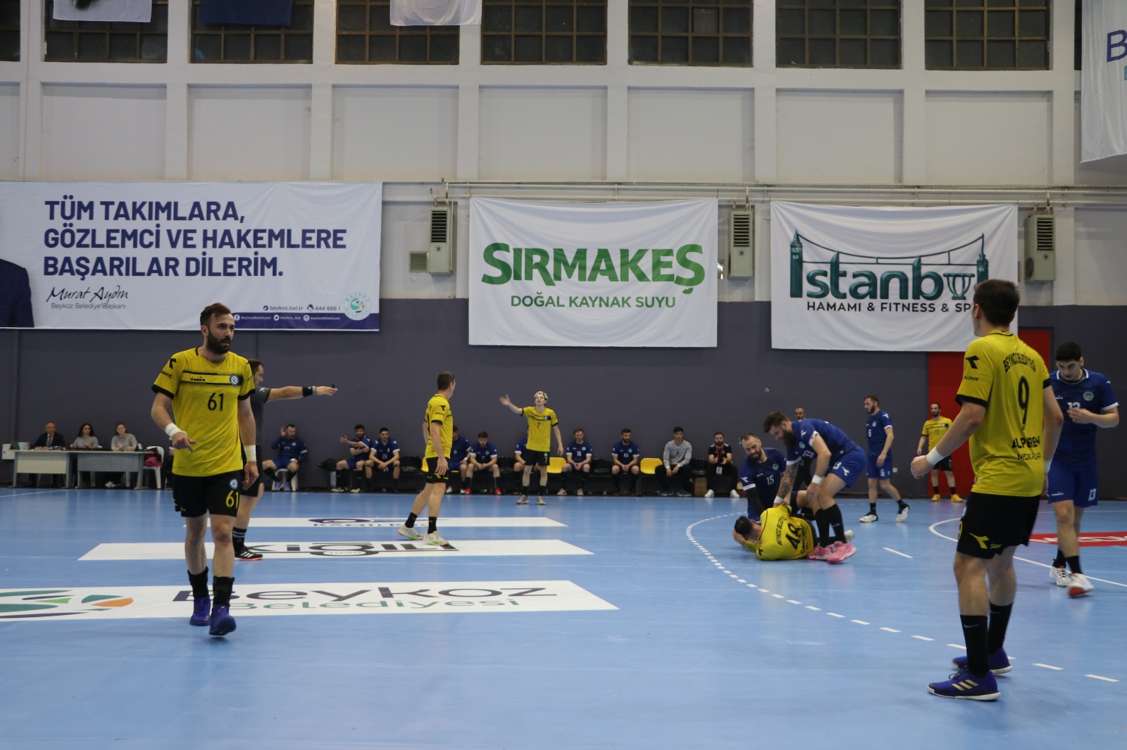 Recep Şahin Köktürk Spor Salonu'nda oynanan karşılaşmaya etkili bir savunmayla başlayan Beykoz Belediyespor ilk 15 dakikalık bölümde rakibine üstünlük kurdu. Maçta yakaladığı avantajı 8-9’luk skorla kısa süreliğine rakibine kaptıran sarı siyahlı ekip yeniden toparlanarak ilk yarıyı 15-13 önde kapattı.