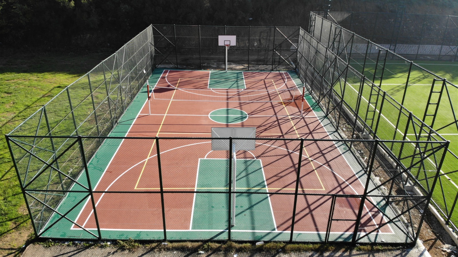 Tesisin içinde yer alan, basketbol, voleybol ve tenis oynanabilen, çok amaçlı sahası da gençlerin sporla iç içe vakit geçirmesi için baştan ayağa elden geçirildi.