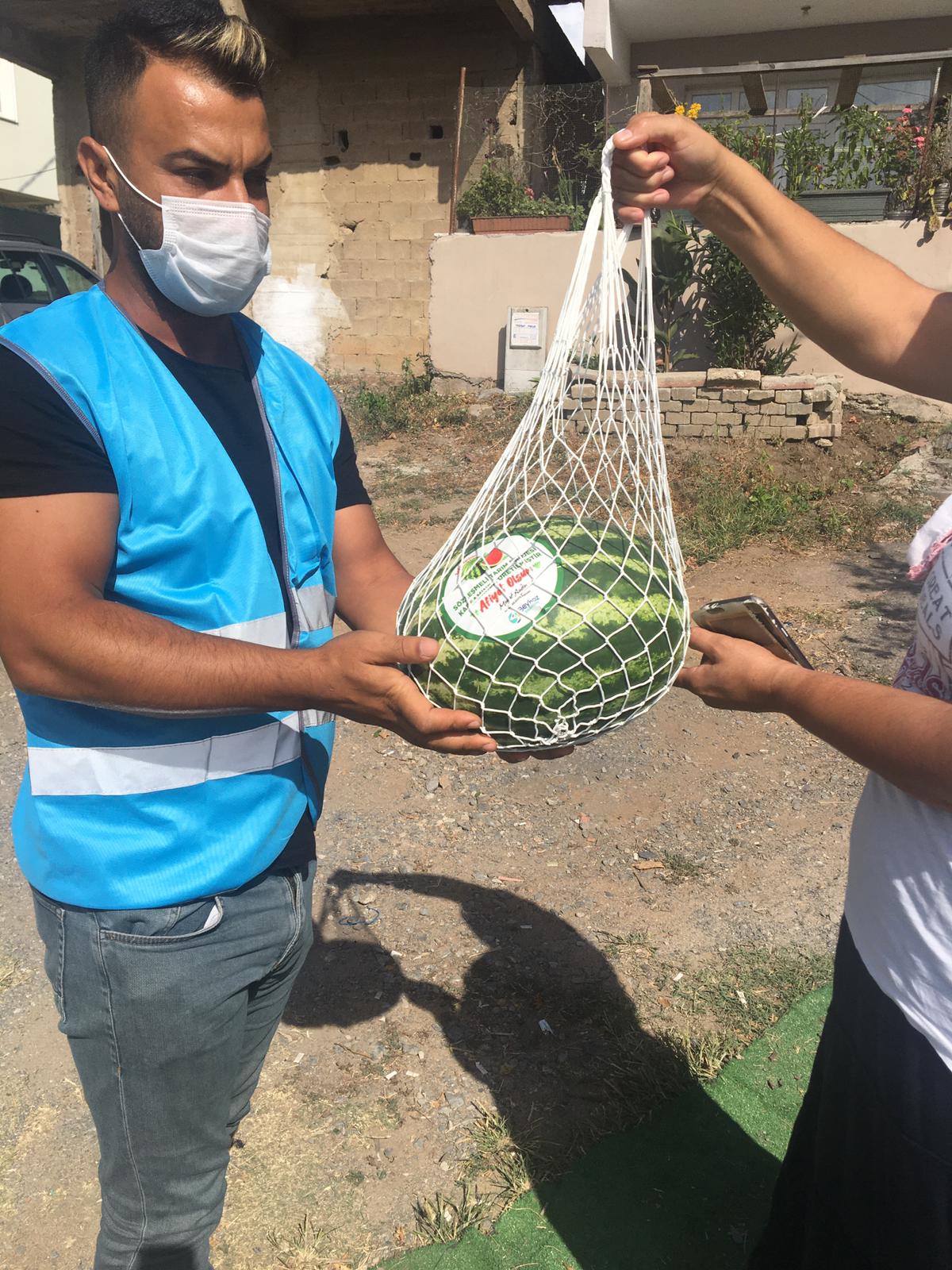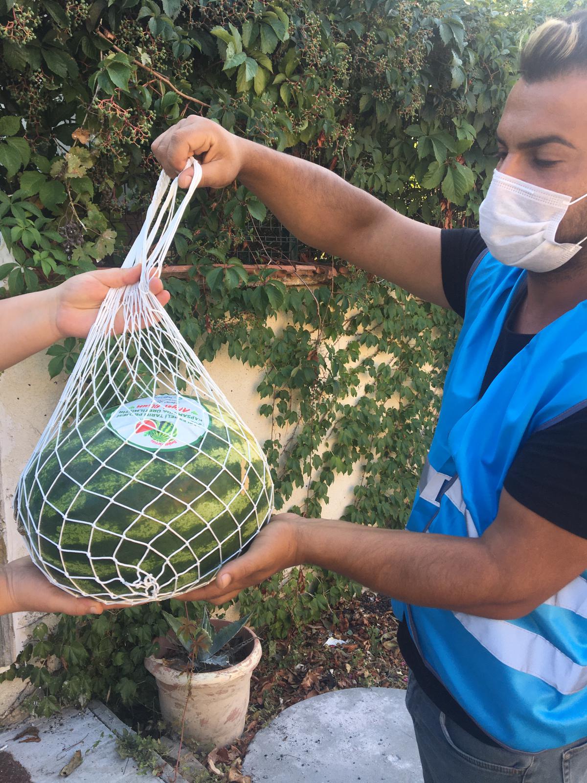 Beykoz Belediyesi proje kapsamında çiftçisine alım garantisi verdiği 35 ton karpuzu, 10 ton elmayı 3,5 ton kirazı tarladan alarak hijyen koşullarına uygun olarak ilçedeki ihtiyaç sahiplerinin evlerine tek tek teslim etti.