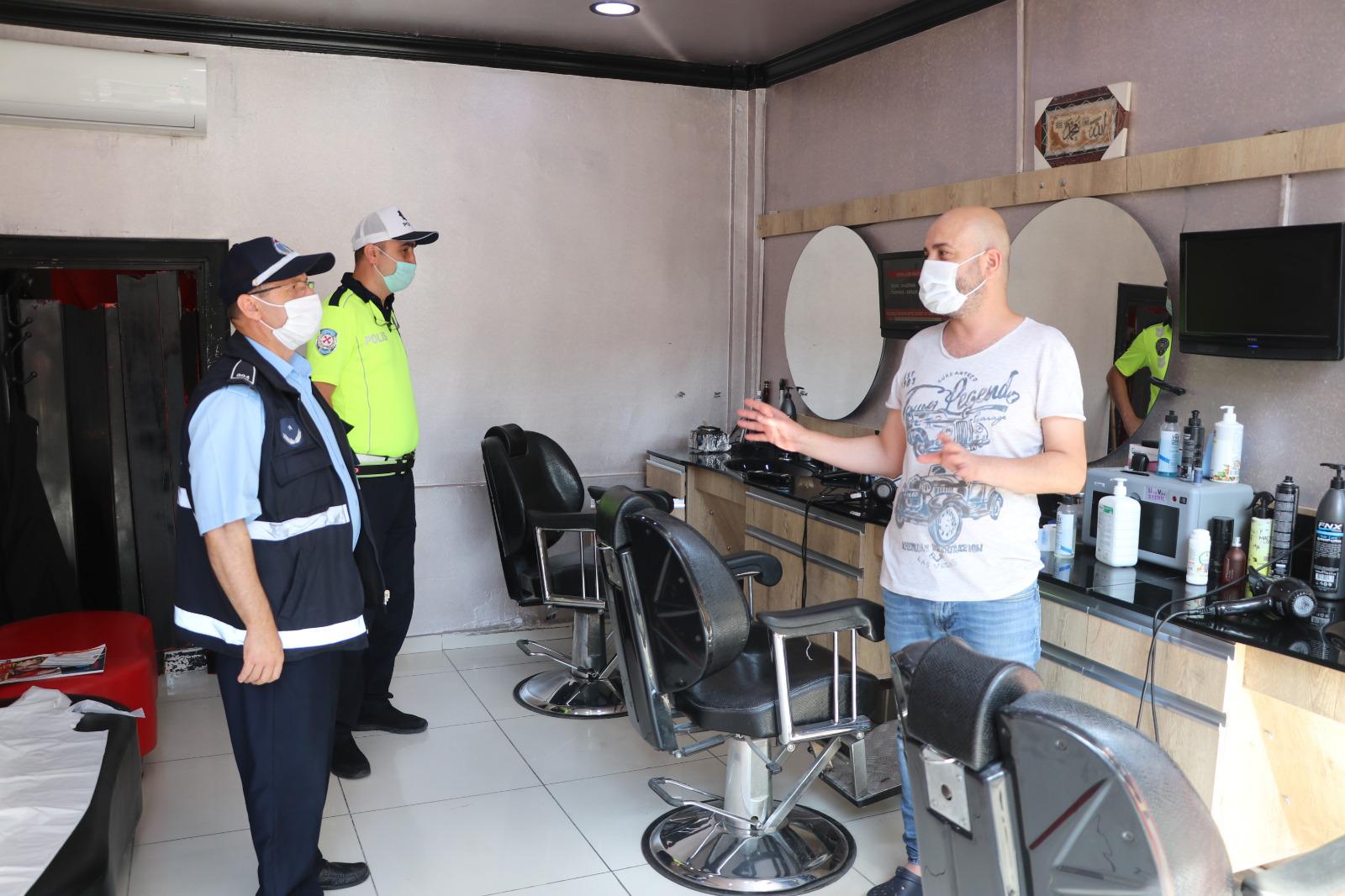 Ekipler işletmelerin çalışanları ve müşterilerine yönelik alması gereken covid-19 tedbirlerini titizlikle gözden geçirirken, mekanlarda 14 kuralı levhaları, dezenfektan bulunup bulunmadığı, genel hijyen kuralları ile kafe ve restoranlarda masaların sosyal mesafeye göre düzenlenip düzenlenmediğine bakıldı.