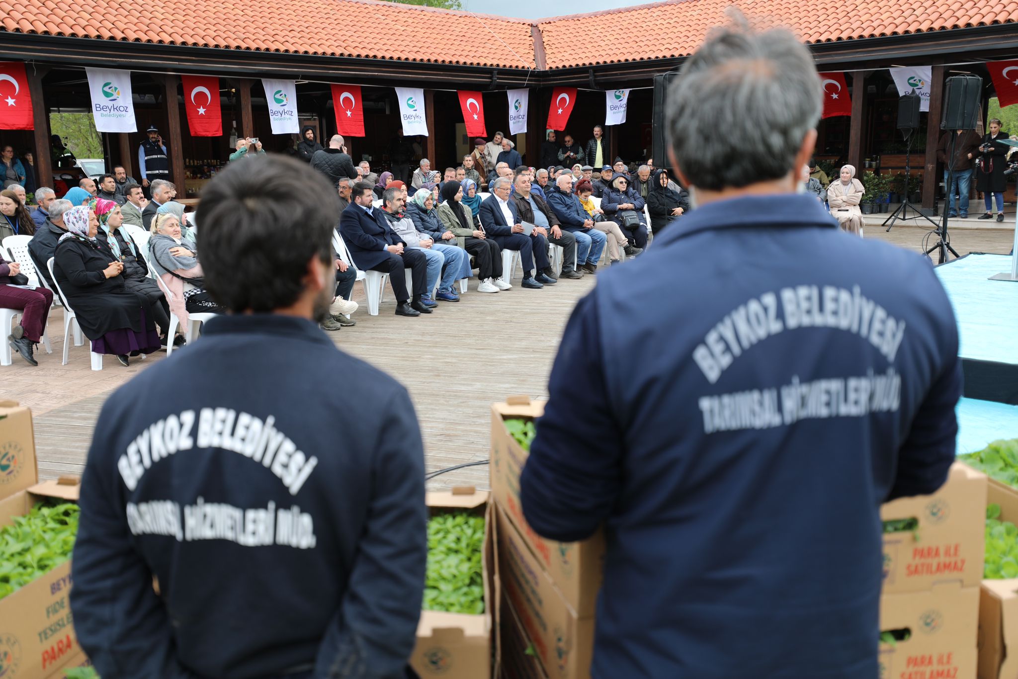 Türkiye’nin en özgün aracısız satış yeri olarak Cumhuriyetköy’de kurulan Beykoz Köy Pazarında yapılan dağıtım törenine katılan Beykoz Belediye Başkanı Murat Aydın, fideleri çiftçilere teslim ederek hayırlı bir sezon diledi.