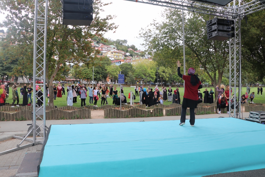 Tarihi Çayır’ın çevresinde yürüyen Beykozlu kadınlar, spor hocaları eşliğinde zumba ve aerobik yaparak otomobilsiz bir dünyaya katkı sağladı.