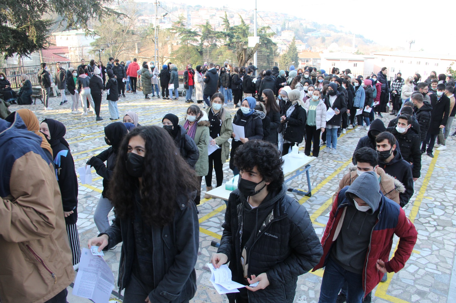 Tüm covid tedbirlerinin alındığı binada, görevliler tarafından adaylara maske ve dezenfektan dağıtıldı. İsteyen öğrenciler kendi maske ve siperlikleriyle binaya giriş yaptı.