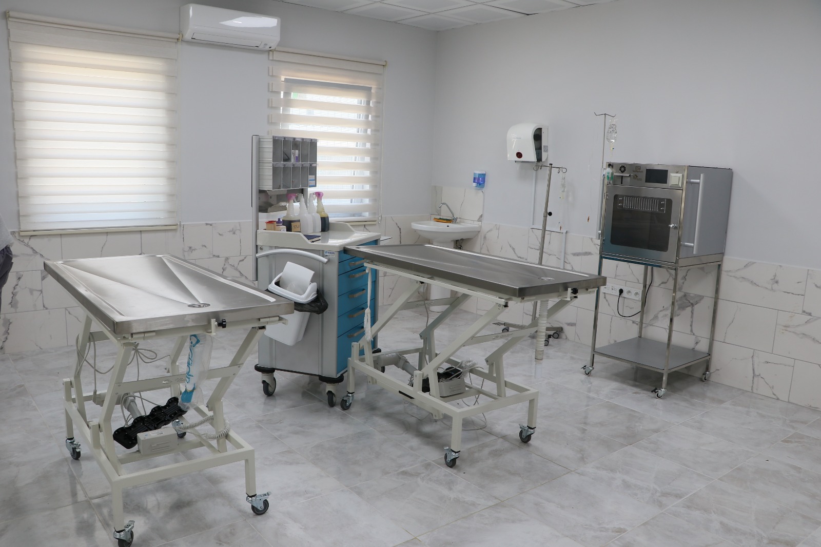 Modern ameliyathane operasyon setleri, masaları, ışık ve ekipmanları yanı sıra hayvanların barındığı kafesler paslanmaz çelikten, kullanışlı ve hijyenik şekilde oluşturuldu.