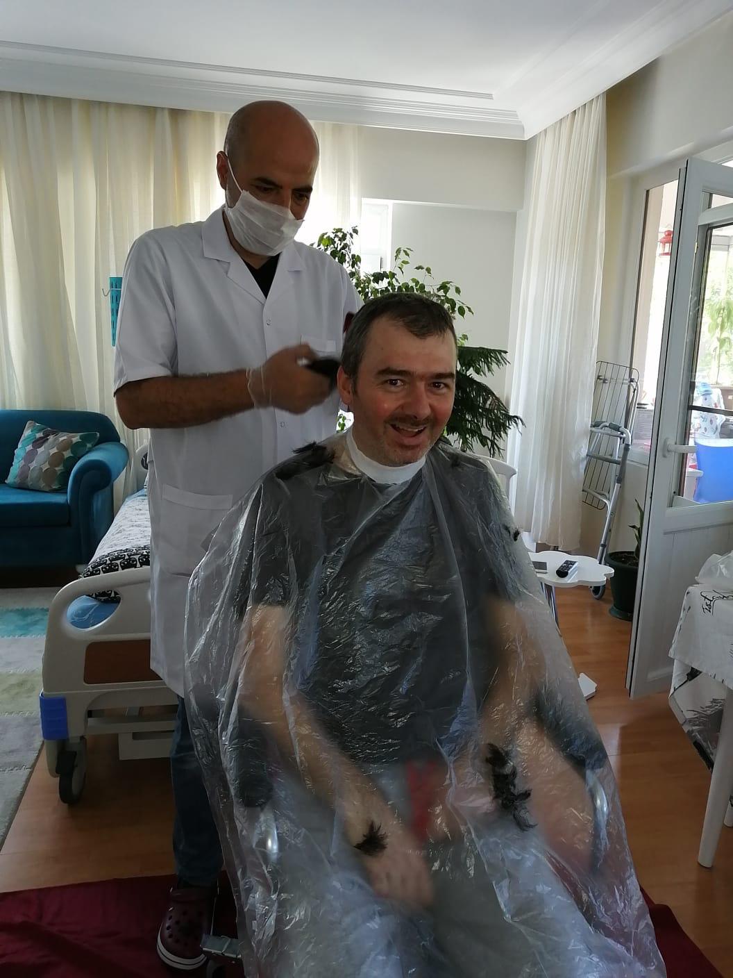 Evde Kuaför hizmeti kapsamında her ay ihtiyaç sahipleri ziyaret ediliyor, randevuyla eve giden kuaförler engelli, yaşlı ve ihtiyaç sahiplerinin saç kesim ve bakımlarını özenle yapıyor.
