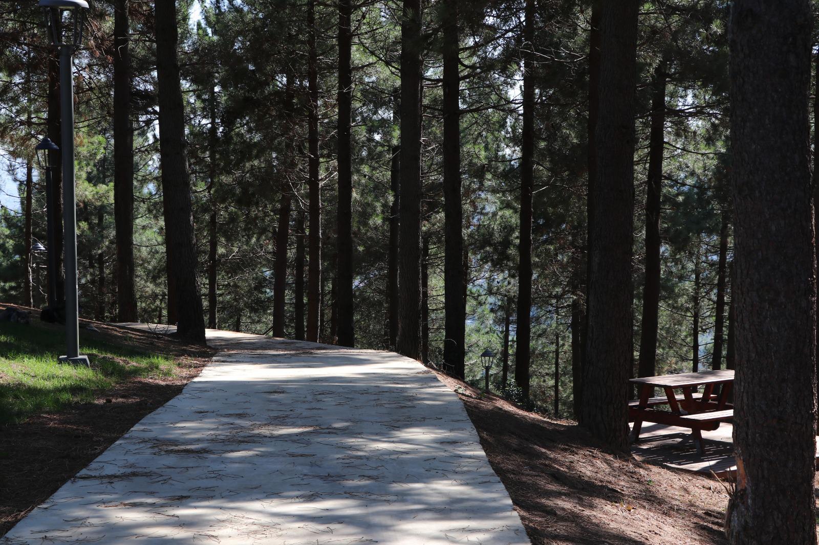 2,5 km uzunluğundaki ağaçlıklı parkurunda yürüyüş ve spor yapan ziyaretçiler ardından yağmur barınakları ve seyir teraslarında manzaraya karşı yorgunluk atıyor.