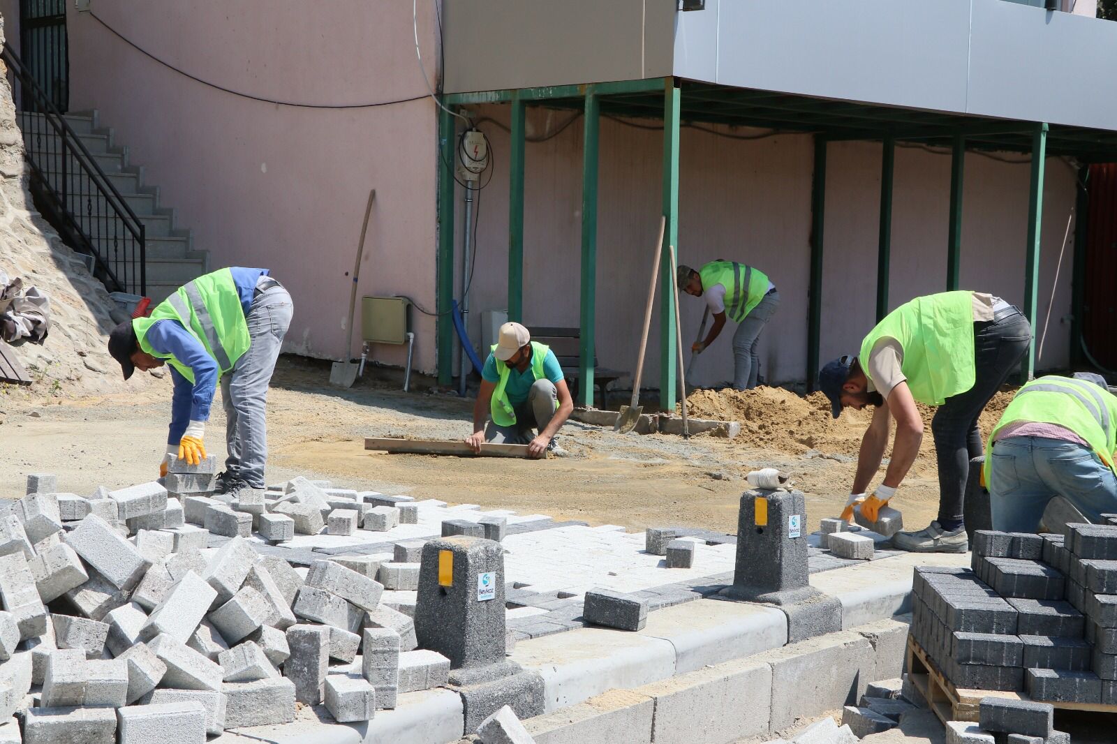 Mevcut kafelerle bağlantılı Canayakın Caddesi üzerinde ise duvar imalatı, zemin iyileştirme ve parke taşı döşeme çalışmaları yapılıyor.