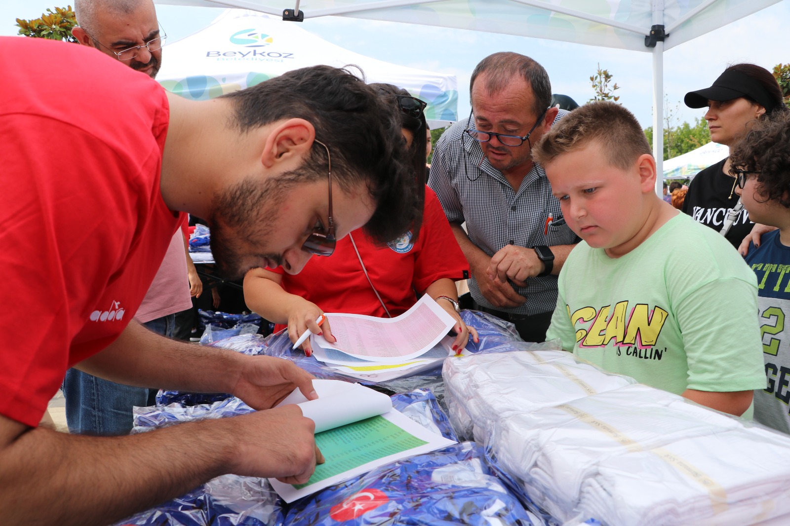 “Yaz Spor Eğitimleri”ne kayıt yaptıran çocuklar ve ailelerin katıldığı törende branşlar tanıtıldı, öğrencilere forma ve ekipmanları hediye edildi.