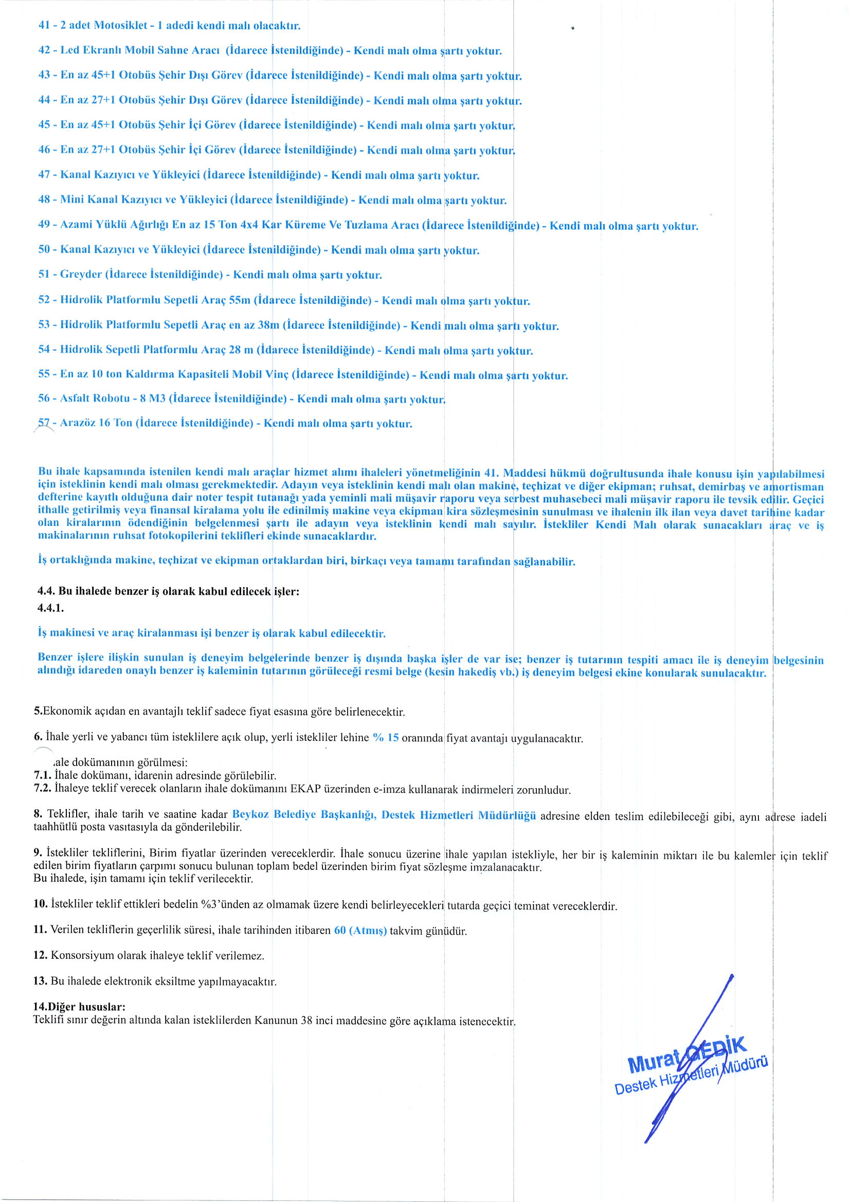 2021 VE 2022 YILLARINA AİT MUHTELİF CİNS VE MİKTARLARDA İŞ MAKİNESİ VE ARAÇ KİRALAMA HİZMETİ ALIMI İŞİ
