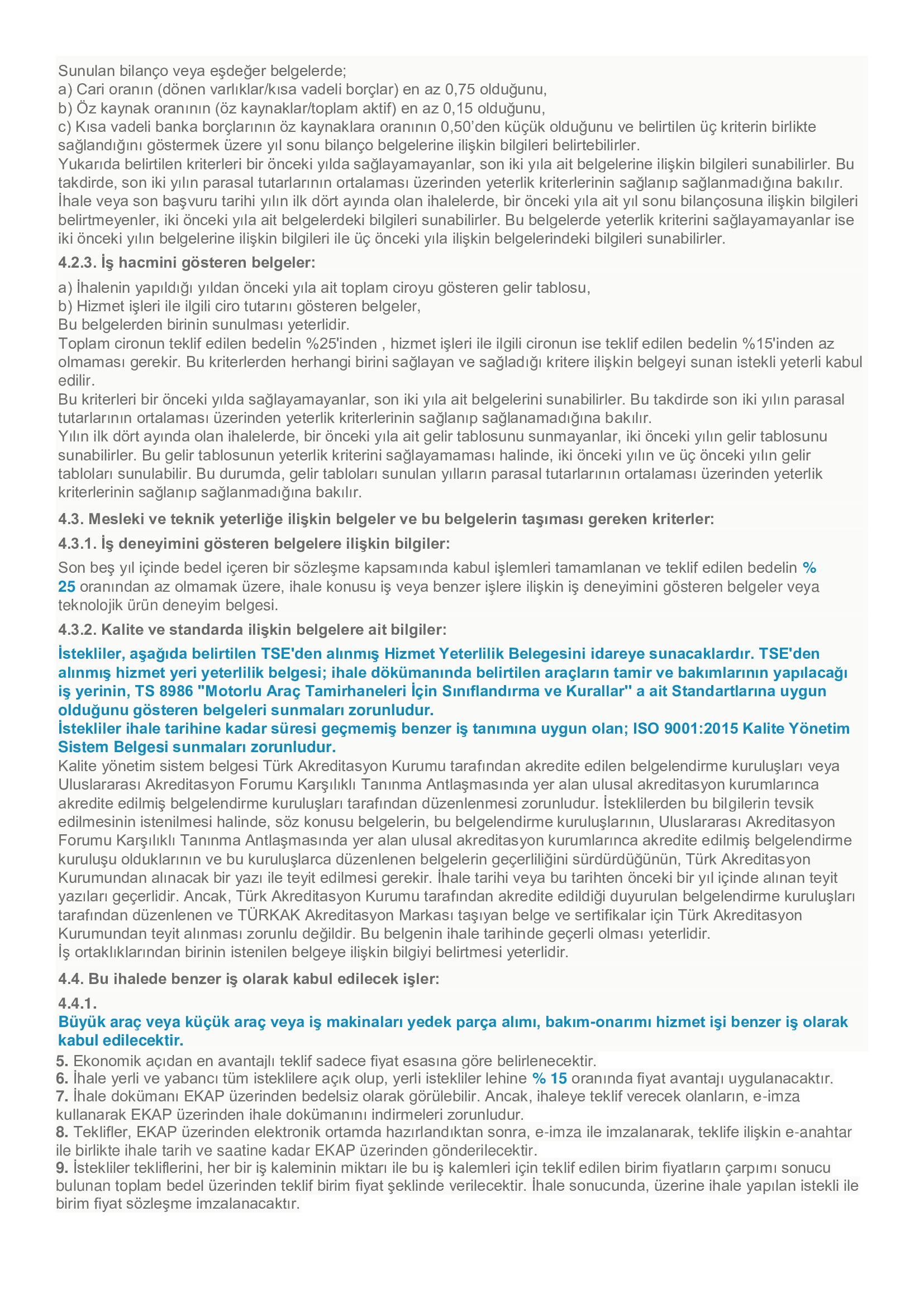 2022 YILI ATÖLYE, ARAÇ, İŞ MAKİNESİ, YEDEK PARÇA VE SARF MALZEME ALIMI, BAKIM ONARIM VE SERVİS HİZMETİ ALIMI İŞİ
