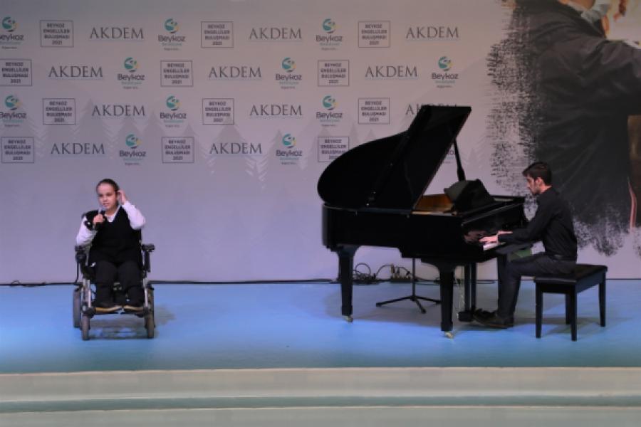 Engellilere sıcacık bir yuva olan merkezin tanıtımına katkı sağlamak ve toplumda farkındalık oluşturmak amacıyla “Beykoz’da Engel Yok, Sevgi Var” sloganıyla düzenlenen “AKDEM Engelsiz Yaşama Adım Adım” Programı’yla engelli çocuk ve gençler yeteneklerini sergiledi.