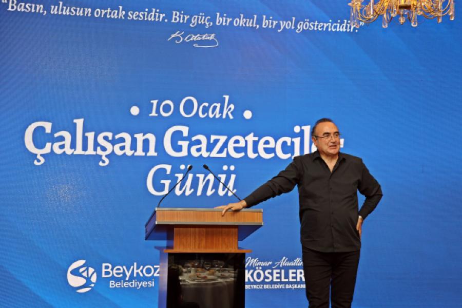 Açılışta yaptığı konuşmada basının demokrasi ve toplumların özgürlük mücadelesinin olmazsa olmaz unsuru olduğunu vurgulayan Beykoz Belediye Başkanı Alaattin Köseler; “Bugün burada, mesleklerine onurlu bir şekilde gönül vermiş gazetecilerimiz için bir araya geldik. ‘10 Ocak Çalışan Gazeteciler Günü’ özellikle ülkemizde, gazetecilerin karşılaştıkları baskı ve zorlukları hatırlamak ve hatırlatmak için önemli bir vesile ve görevdir. Halkımızın en doğru bilgiye tarafsız bir şekilde ulaşmasını sağlamak için emek ve mücadele veren elçilerimizsiniz. Bu bilinçle, Beykoz Belediyesi olarak her zaman yanınızda olduğumuzu ifade etmek istiyorum. Bu geceye değer katan, fikirleriyle topluma ışık tutan kıymetli konuklarımıza katılımları için gönülden teşekkür ediyor, gazetecilik mesleğine tarafsız ve ilkeli bir şekilde gönül veren tüm yerel ve ulusal basın mensubu arkadaşlarımın ‘10 Ocak Çalışan Gazeteciler Günü’nü’ kutluyorum” dedi.