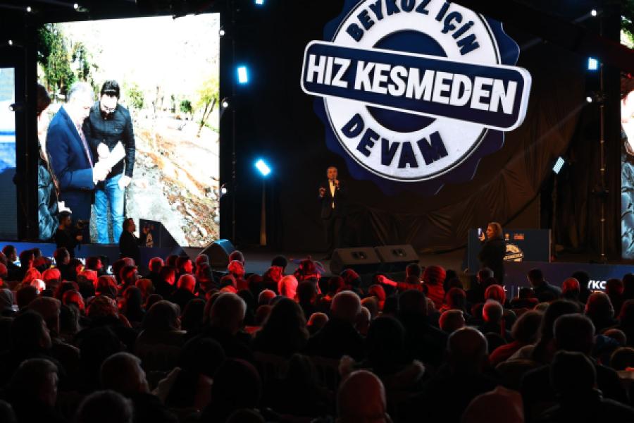 Başkan Murat Aydın göreve geldikleri günlerde geceleri karanlık olan ilçe sahilinin Gümüşsuyu Restoran, Beykoz Kahvecisi ve çevre düzenlemesiyle 7/24 yaşayan mekânlara dönüştüğünü ve Türkiye’nin 141 konserin verildiği en güzel etkinlik alanına kavuştuğunu, sokakların huzuru için 384 dönüm üzerine Beykoz Hayvan Rehabilitasyon Merkezi ve Doğal Yaşam Alanı’nı kurulduğunu, Türkiye’nin en büyük Beykoz Spor Ormanı’nın kapılarını açtığını, AKDEM ile dezavantajlı bireylere eğitim verildiğini söyledi.