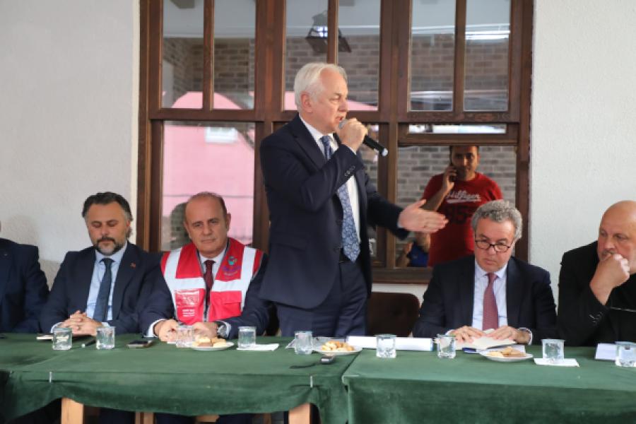 “Seçim döneminde söz verdik. Belki her köyde değil ama uygun olan yerlerde halkın toplandığı ve hizmet aldığı kalıcı mekânlar yapacağız. Mahmutşevketpaşa’nın girişindeki alanı revize edeceğiz. Sizin toplanacağınız, kına gecesi yapacağınız ve nikâh kıyacağınız mekânları bu mahallede oluşturacağız. Belediye hizmetlerini de buralarda vereceğiz.”
