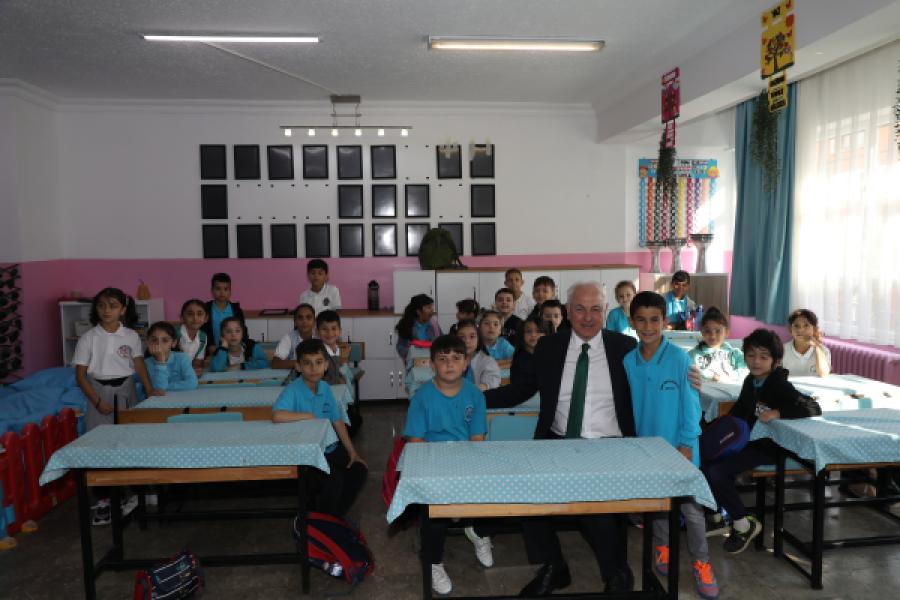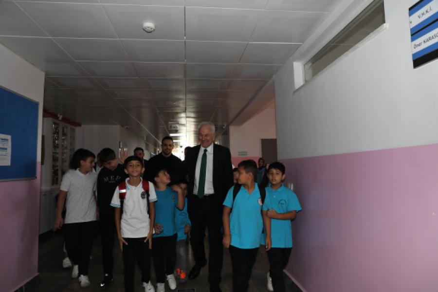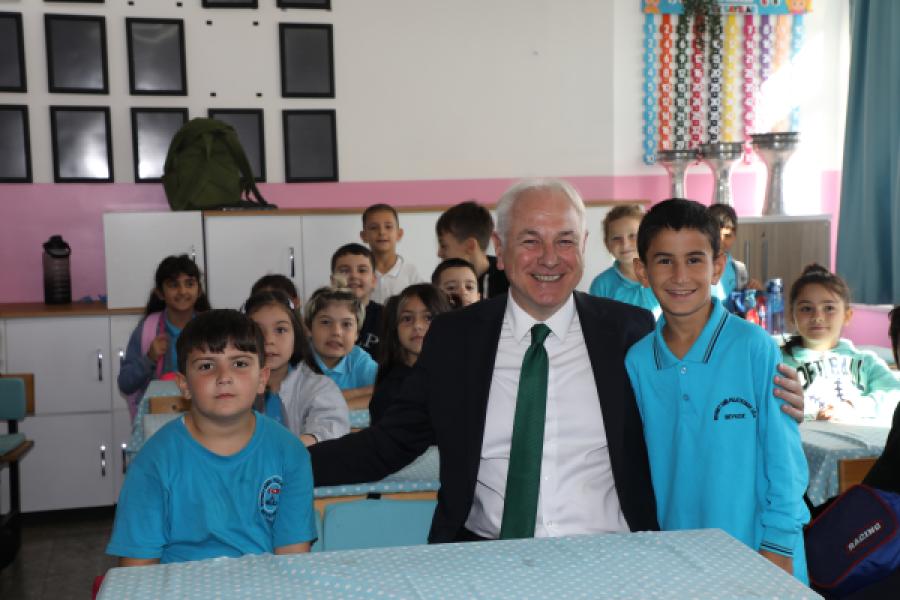 Başkan Köseler, okul ziyaretlerinde öğrencilerin yoğun ilgisiyle karşılaşırken, kendisiyle fotoğraf çektirmek isteyen öğrencileri de kırmadı.
