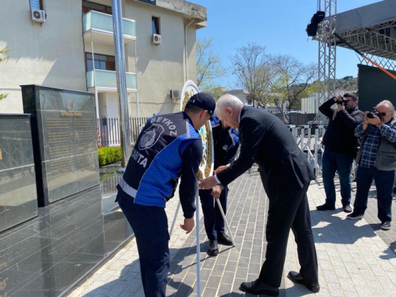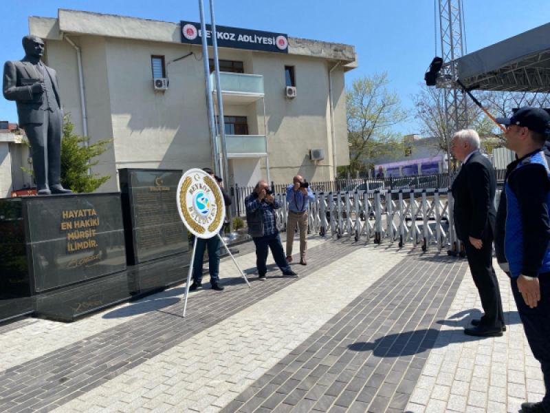 Meclis toplantısının ardından Başkan Alaattin Köseler ve Meclis Üyeleri, belediye binasının yanındaki Atatürk Anıtına geçti. Anıta Başkan Köseler’in çelenk koymasının ardından saygı duruşu yapıldı ve İstiklal Marşımız okundu.