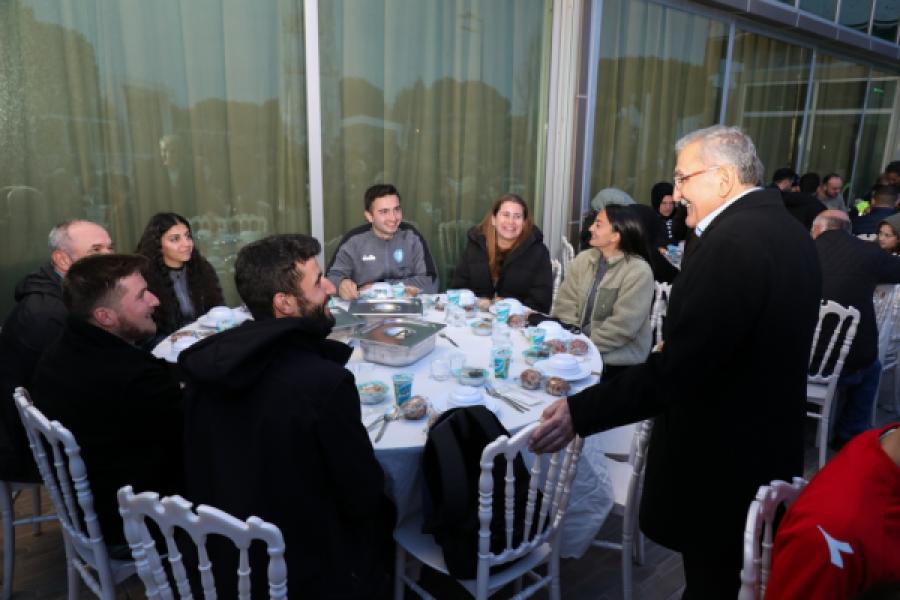 Başkan Murat Aydın akşam ezanından önce sofraları tek tek dolaşarak personelini selamladı, herkese hayırlı bir Ramazan Ayı diledi.