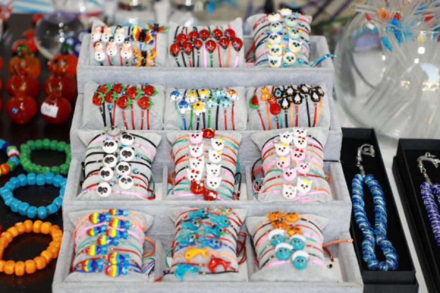 Beykoz’un camcılık mirasının görücüye çıktığı stantlarda ustaların özenle ürettiği bardaklar, kaseler, tabaklar, vazolar, cam boncuklar, çay takımları, çeşm-i bülbül, kristal ve çeşitli hediyelik eşyaların satışı yapılıyor.