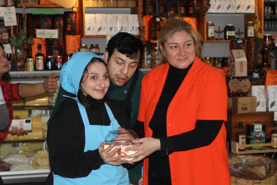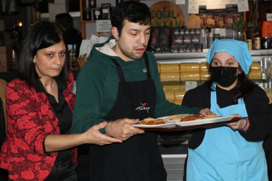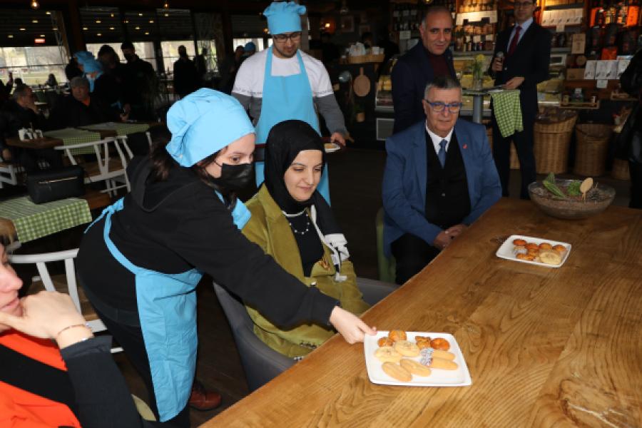 Kafeterya ortamında düzenlenen etkinlik boyunca misafirlere garsonluk yaparak çay ve kurabiye ikram eden gençler, sempatik tavırları, güleryüz ve yetenekleriyle takdir topladı.