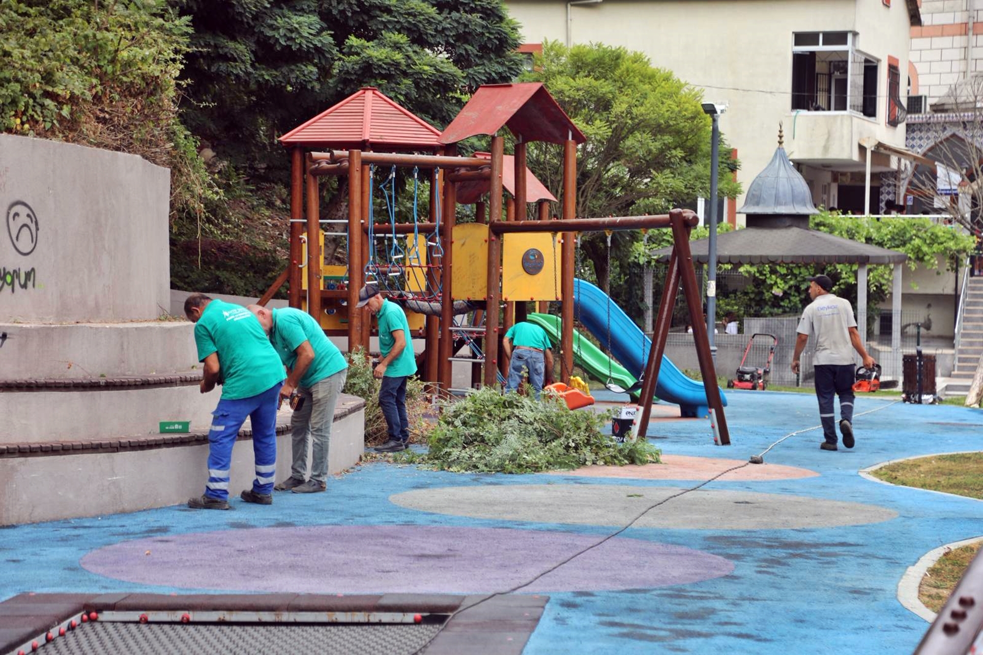 Park ve Bahçeler Müdürlüğü ekipleri mahalledeki park ve yeşil alanlarda çim biçme, form verme ve çalı budama işlemlerini tamamladı. Ayrıca ahşap ekipmanların onarımı ve boyama çalışmaları yapılarak parklar yenilendi. 45 cadde ve sokakta ot, çalı ve diken temizliği yapılırken, tehlike arz eden ve sokak aydınlatmalarını kapatan dallar da budandı.