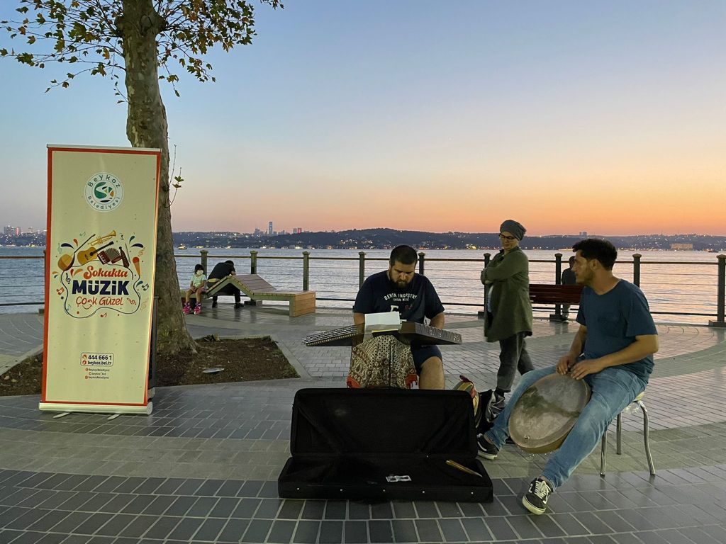 Boğaz kıyısında gezinti yapmak için sahile gelen vatandaşlar, sokak müzisyenlerinin enstrünmanlarından yükselen özgün ve otantik eserleri dinleme fırsatı buldu.