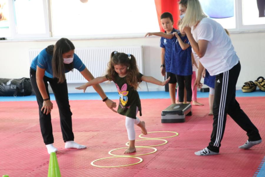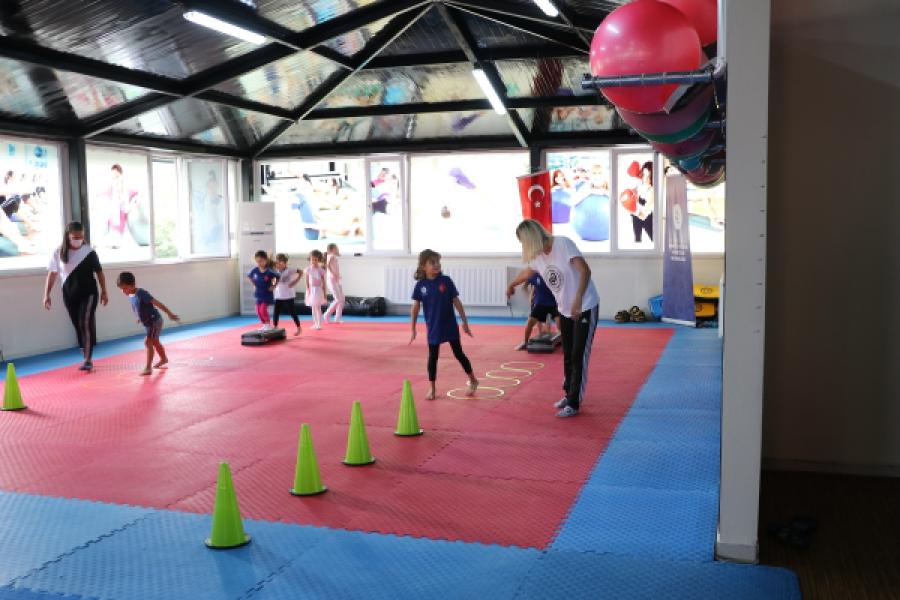 Gençleri ve çocukları sporla buluşturan eğitimler salgın koşullarına uygun olarak 10 kişilik gruplarla, sosyal mesafe, maske ve hijyen kurallarına uygun olarak yapılıyor.