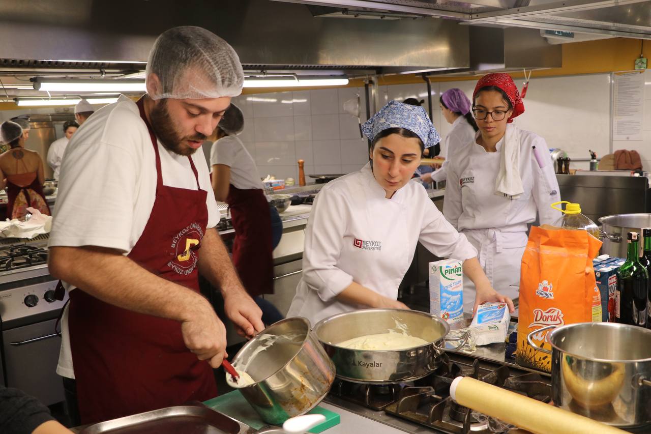Beykoz Üniversitesi Gastronomi ve Mutfak Sanatları Mutfağı’nda organik beslenmeye dikkat çekmek için yapılan organizasyonda misafir gençler, ilçedeki kent tarımı tesislerinde yetişen doğal sebzelerle ülkelerine özgü yemekler hazırladı.