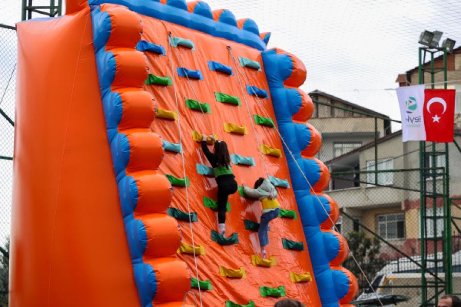 Sporun eğlenceyle buluştuğu bir atmosferde katılımcılar; okçuluk, zumba kids, tırmanma duvarı, şut beceri parkuru, trambolin alanları, dart oyunları ve şişme kaydırak gibi çeşitli aktiviteleri deneyimleme fırsatı yakaladı.