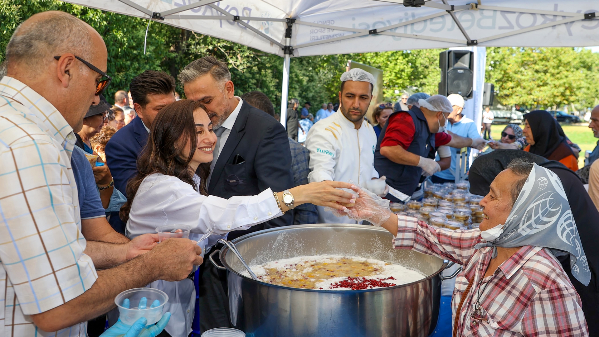 Konuşmaların akabinde, Dede Serdar Gazi Karaba’nın yaptırdığı aşure lokması duasının ardından Başkan Vekili Özlem Vural Gürzel ve protokol üyeleri, kazanların başına geçerek vatandaşlara aşure ikramında bulundu.
