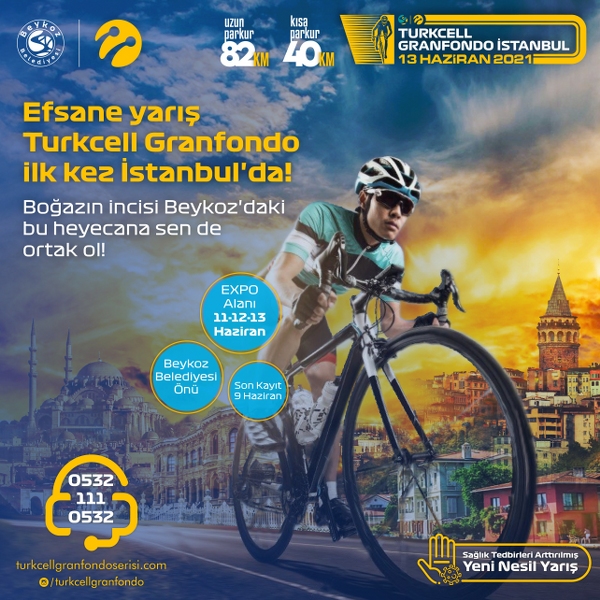 İlk kez İstanbul’da ve Beykoz Belediyesi’nin ev sahipliğinde, ilçenin doğa ve tarih dolu atmosferinde yapılacak Turkcell GranFondo 2021, sosyal mesafe kurallarına uygun, sağlık önlemleri artırılmış olarak gerçekleşecek.