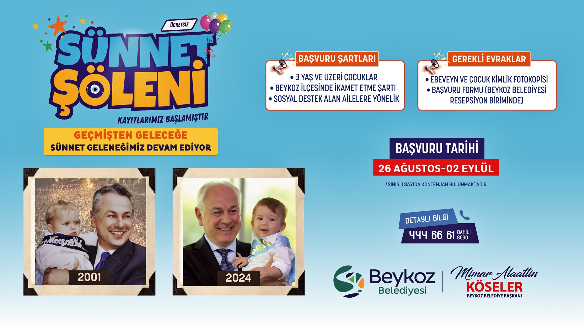 Kayıtların 2 Eylül’e kadar süreceği hizmet kapsamında, Beykoz’daki birçok hastane ve tıp merkezinin de desteğiyle yüzlerce çocuk sünnet olacak.