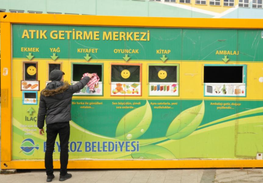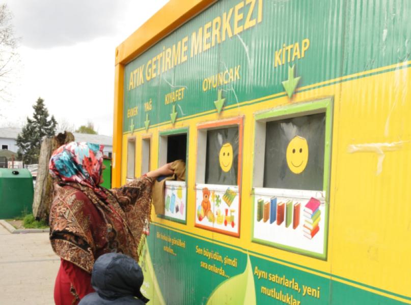 Meydan ve caddelere kurulan atık getirme merkezlerinde ambalaj, giysi, atık yağ, oyuncak, kitap, ilaç, pil, plastik, metal, cam ve elektronik atıklar geri dönüşüme girmeden kaynağında ayrıştırılıyor.