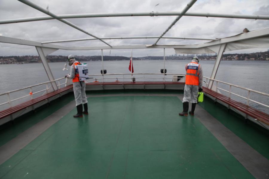 Virüsün halka açık alanlar yoluyla yayılmaması için ortak temas edilen yüzeyler etkili solüsyonlar ve titiz bir uygulamayla dezenfekte ediliyor.