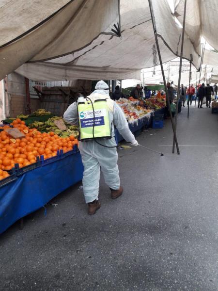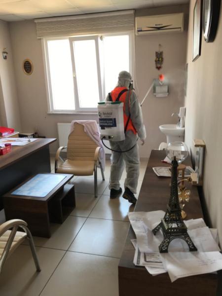 İlçedeki tüm cami, okullar ilaçlanarak kişisel karantina sonrası için kullanıma hazır hale getirilirken vatandaşların sık uğradığı kamu binaları, muhtarlıklar, hastaneler, aile sağlığı merkezleri, duraklar, noterler, marketler, pazar yerleri, ATM'ler, halk otobüsleri, minibüsler, taksiler ve çöp konteynerleri özenle ilaçlanıyor.
