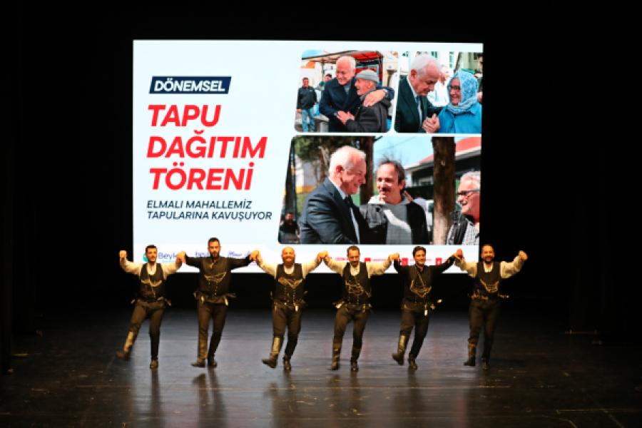 Tapu teslimi sonrası günün anısına Elmalılı 195 hak sahibi vatandaşın katılımıyla hatıra fotoğrafı çektirildi. Tapu teslim programı, horon ekibinin sergilediği gösteri sonrası sona erdi.