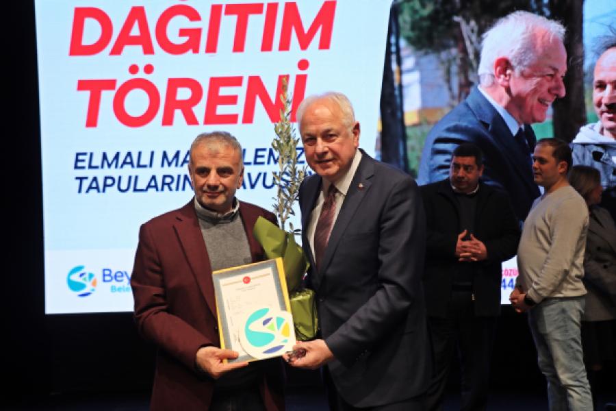 Göreve geldiği günden itibaren, Beykoz’un kanayan yarası haline gelen mülkiyet sorununu çözmek için çalışan Beykoz Belediye Başkanı Alaattin Köseler’in çalışmaları meyvelerini verdi. Elmalı Mahallesi’nde ikamet eden 195 vatandaş 2B’den hak kazandıkları tapularını törenle aldı.