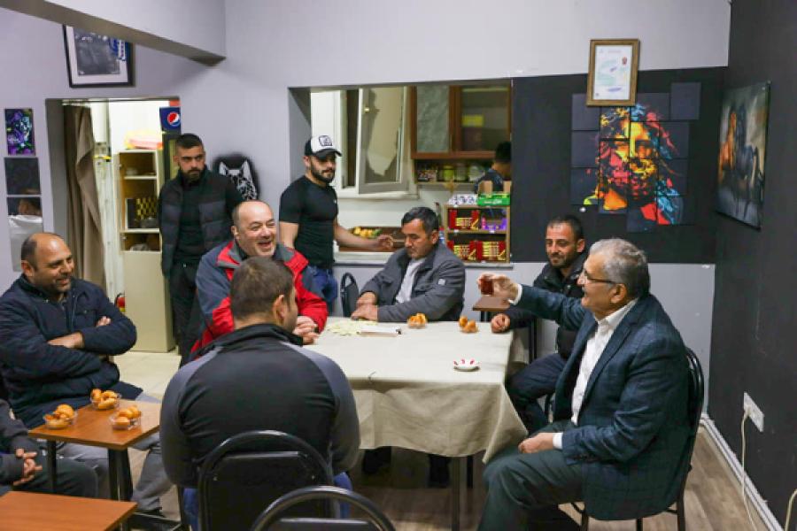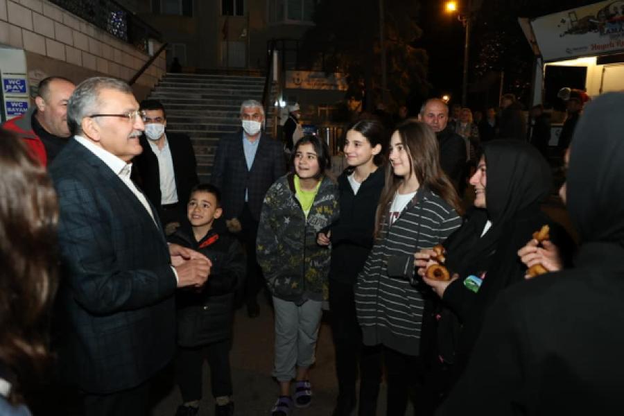 Teravih namazlarında ilçe sakinleriyle bir araya gelen Başkan Murat Aydın, Ramazan iklimine dair vatandaşlarla sohbet ediyor.