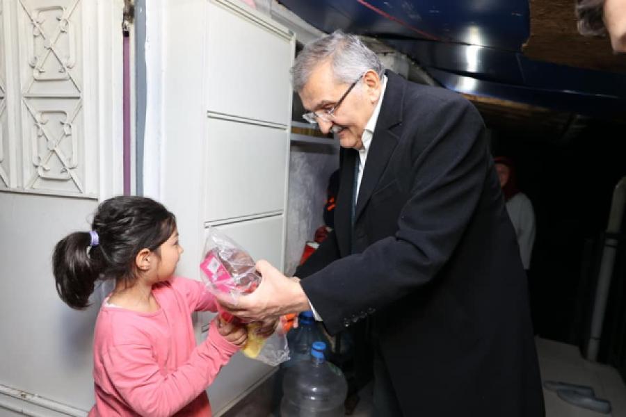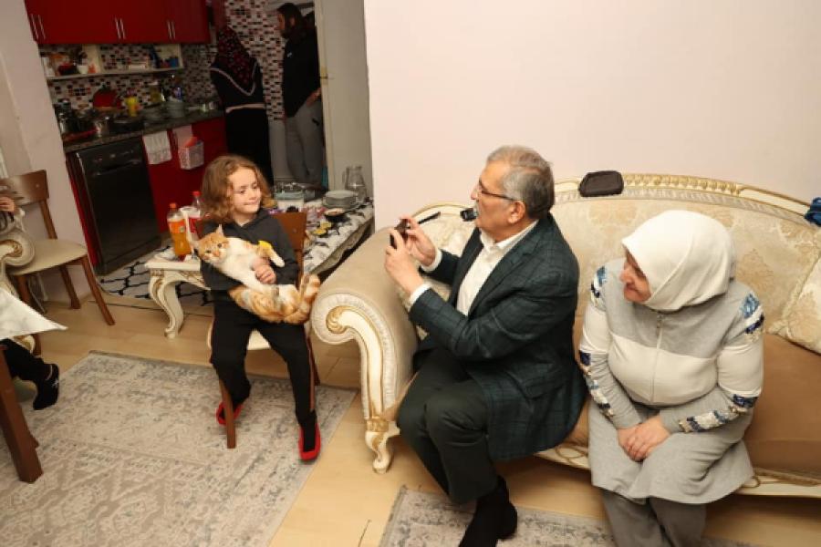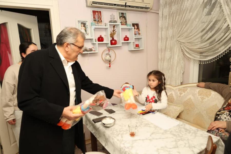 Başkan Murat Aydın, iftar sofralarına neşe katan çocuklara beraberinde getirdiği oyuncakları hediye ediyor.