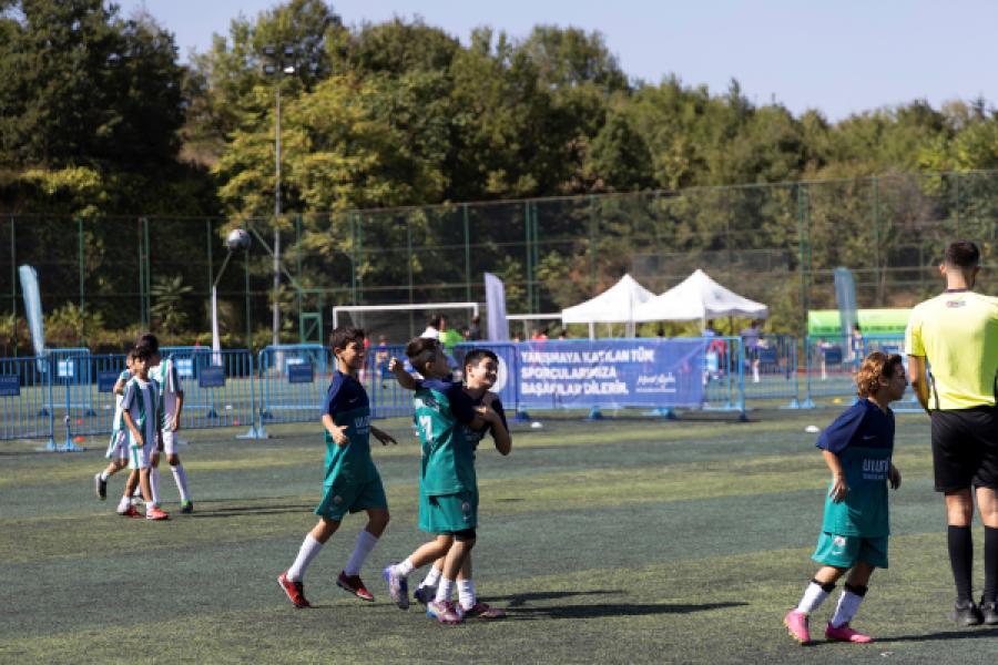 Sporcular yeşil sahada şampiyonluk için kıyasıya mücadele ederken aileler de tribünlerden geleceğin yıldız futbolcularına tezahüratlarıyla destek oldu.