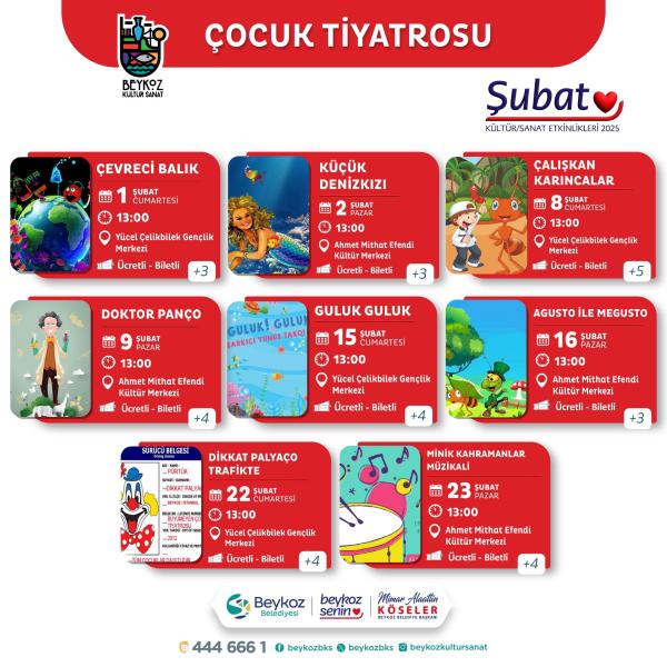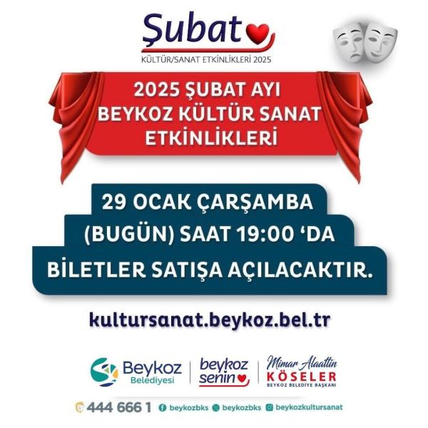 Beykoz Belediyesi, Şubat ayında sanatseverleri birbirinden özel kültür sanat etkinlikleriyle buluşturuyor. Tüm ilçe sakinlerine hitap eden tiyatro oyunları, stand-up gösterisi ve konserler Beykozlulara unutulmaz bir kültürel deneyim sunacak