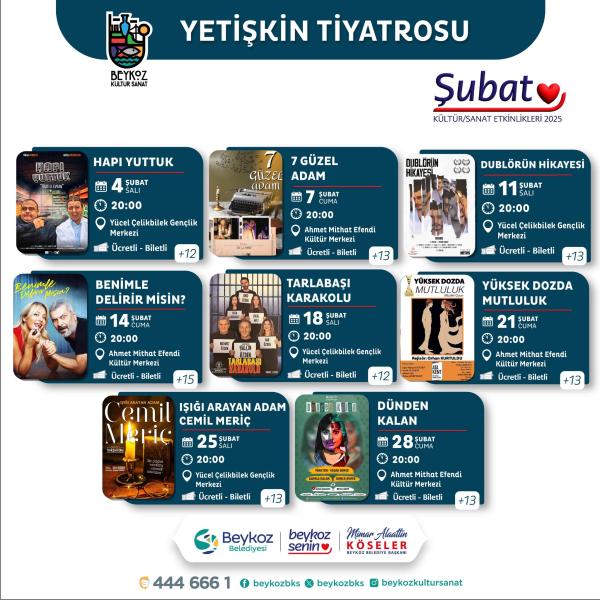 Şubat ayında yetişkinlere yönelik sahnelenecek olan tiyatro oyunları, izleyicileri sanatsal bir yolculuğa çıkaracak.