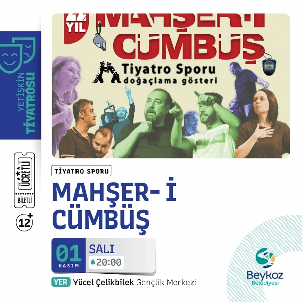 Beykozluları edebiyattan müziğe tiyatrodan sinemaya zengin içerik ve nitelikli etkinliklerle buluşturacak yeni kültür-sanat sezonu, 1 Kasım 2022 Salı günü sahnelenecek “Mahşer-i Cümbüş” yetişkin tiyatro oyunuyla başlıyor.
