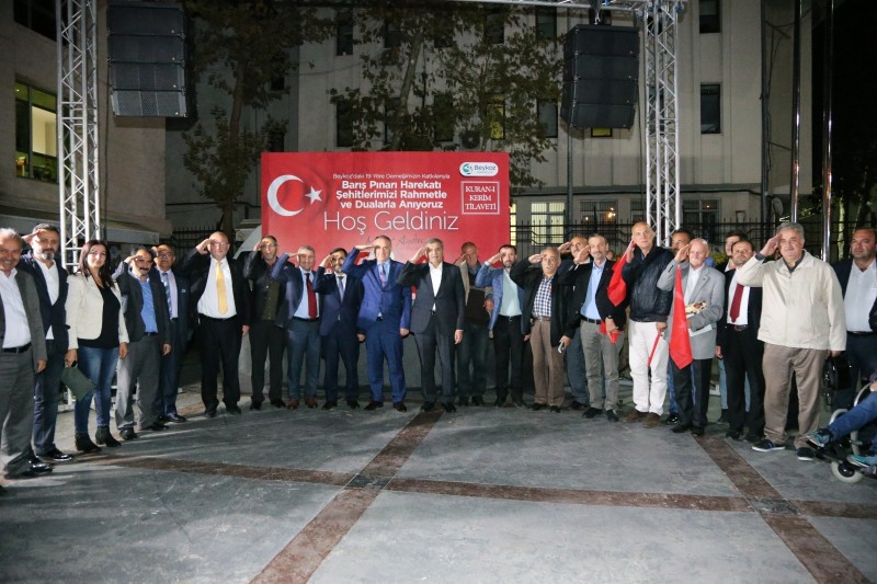 Programda ilçe sakinleriyle buluşan Beykoz Belediye Başkanı Murat Aydın: “Bu akşam ilçe sakinlerimizle bir araya gelerek sınırlarımızın güvenliği, vatanın bölünmez bütünlüğü için korkusuzca görev yapan Mehmetçiğimize moral ve destek olmak, şehitlerimizi dualarımızla anmak için toplandık. Kalbimiz her an kahraman ordumuzla atıyor. Rabbim harekâtta görevli tüm askerlerimizin selametle ülkemize dönmelerini nasip etsin. Bu vesileyle başta Barış Pınarı Harekâtı şehitleri olmak üzere, bizlere canlarıyla kanlarıyla bu yurdu vatan yapan tüm şehitlerimizi rahmet ve minnetle anıyor, milletimize esenlikler diliyorum” dedi.