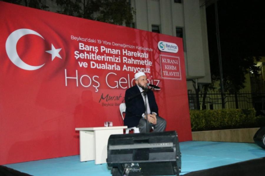 Beykoz Belediyesi tarafından ilçedeki 19 yöre derneğinin iştirakiyle düzenlenen dua programında eller Barış Pınarı Harekatı’nda görev yapan kahraman Mehmetçik ve tüm şehitler için semaya kalktı.