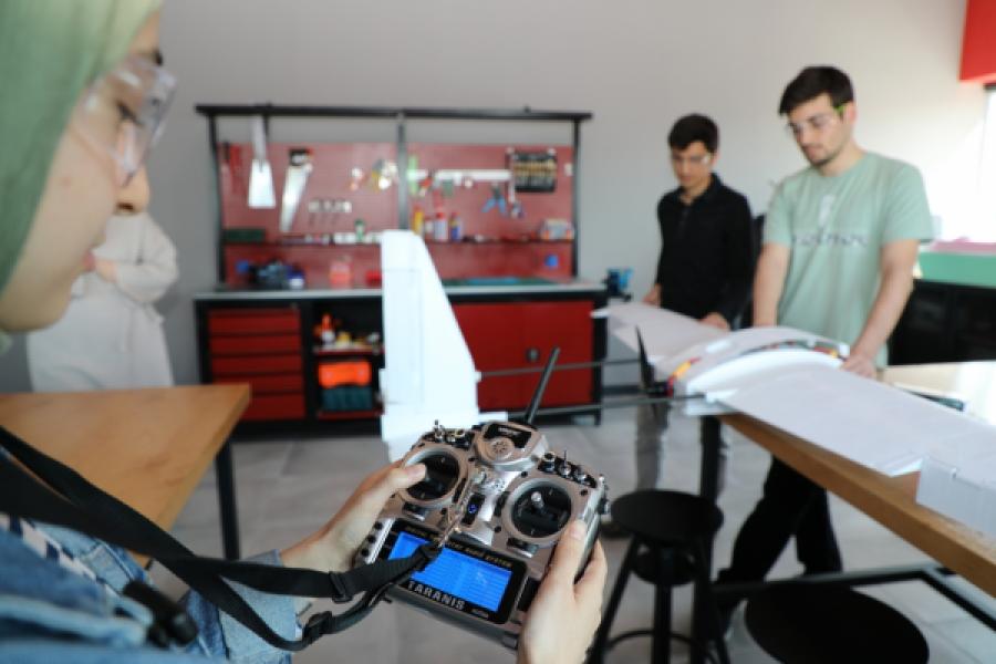 İHA’nın 3D modellemesini “Vizyon 360” atölyelerinde gerçekleştiren gençler, yazılımını titizlikle yaptıkları modelin kanatları ve motor aksamını da monte ederek hayallerini gerçekleştirmeye bir adım daha yaklaştı.