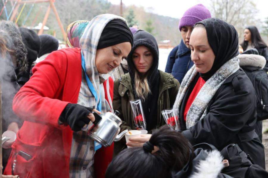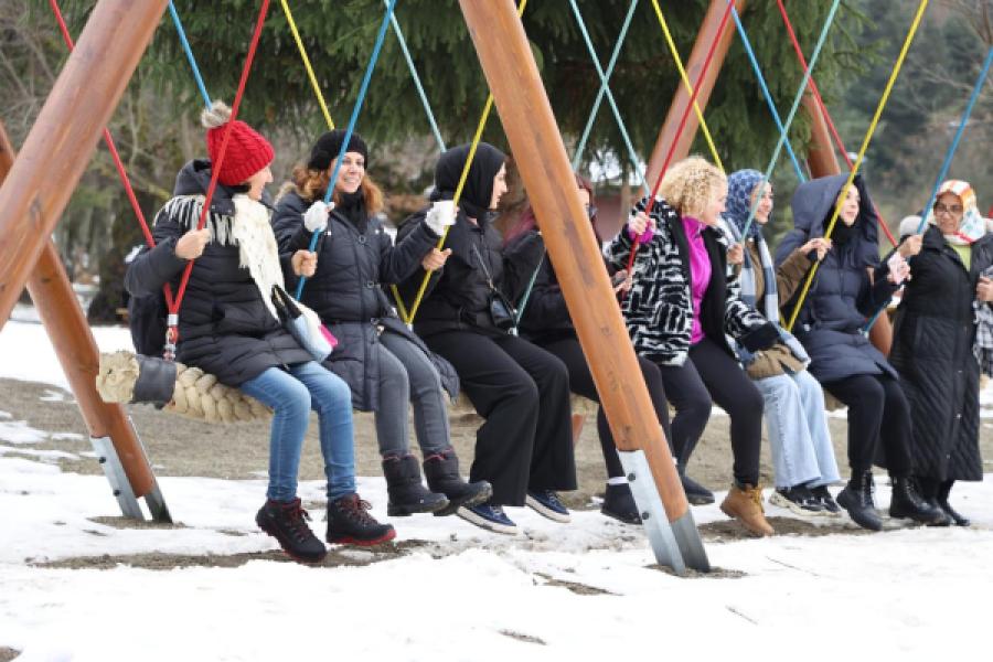 Yeşil doğanın huzur veren atmosferinde gezinti yaparak dinlenen kadınlar sağlık ve enerji kazandı.