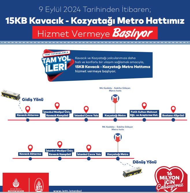 Bütün dünyayı etkisi altına alan pandemi döneminde yolcu yetersizliğinden dolayı seferleri geçici olarak kaldırılan 15KB otobüs hattı yeniden Beykozlu vatandaşların hizmetine sunuluyor. 9 Eylül 2024 tarihinde tekrar sefere başlayacak olan 15KB hattının Kavacık ve 500T'nin yolcu yoğunluğunu alması öngörülüyor. Bu yeni hat sayesinde Beykozlular, metroya daha hızlı, konforlu ve rahat bir şekilde ulaşabilecekler.